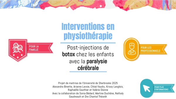 Projet de maitrise de l'Université de Sherbrooke 2025 Alexandra Binette, Arianne Lavoie, Chloé Vaudry, Krissy Langlois, Raphaëlle Gauthier et Valérie Dionne Avec la collaboration de Sonia Bédard, Martine Duchêne, Nathaly Gaudreault et Dre Chantal Théorêt