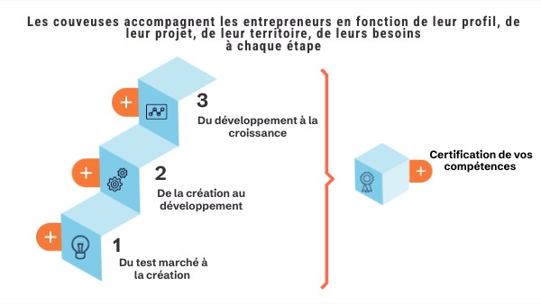 Les couveuses accompagnent les entrepreneurs en fonction de leur profil, de leur projet, de leur territoire, de leurs besoins à chaque étape