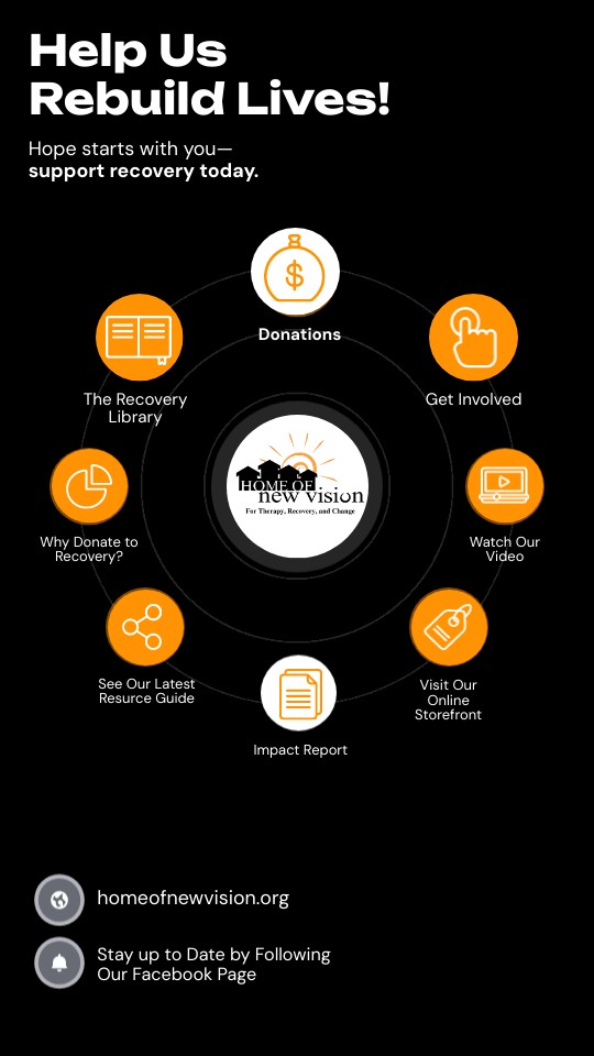 The Recovery Library is a living collection of personal stories that illuminate the many paths of recovery. Created by Home of New Vision, this digital archive shares the voices of individuals in recovery, loved ones affected by addiction, and those who support the journey. These stories of resilience, struggle, and transformation highlight the strength of the recovery community while helping to reduce stigma and inspire hope. By sharing diverse perspectives, we aim to show that recovery is possible in many ways and that no one is alone in their journey.