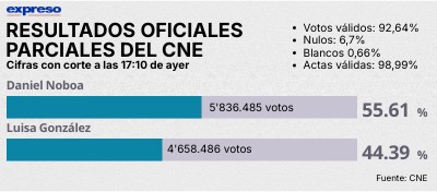Resultados oficiales parciales del CNE