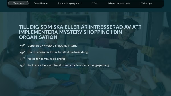 Uppstart av Mystery shopping internt Hur du använder KPI:er för att driva förändring Mallar för samtal med chefer Konkreta arbetssätt för att skapa motivation och engagemang