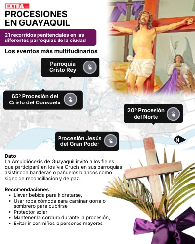Dato La Arquidiócesis de Guayaquil invitó a los fieles que participará en los Vía Crucis en sus parroquias asistir con banderas o pañuelos blancos como signo de reconciliación y de paz. Recomendaciones