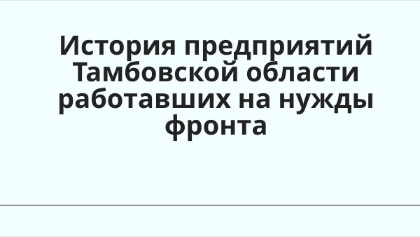 История предприятий Тамбовской области работавших на нужды фронта
