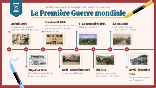 L’archiduc François-Ferdinand, héritier du trône d’Autriche-Hongrie, est assassiné à Sarajevo par Gavrilo Princip, un nationaliste serbe. Cet événement déclenche une réaction en chaîne qui mènera à la Première Guerre mondiale.