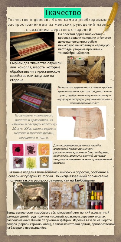 Ткачество в деревне было самым необходимым и распространенным из женских рукоделий наряду с вязанием шерстяных изделий.