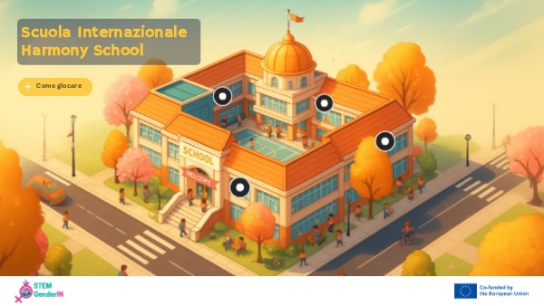 Benvenuti e benvenute! Esplorate la nostra scuola virtuale per individuare gli stereotipi di genere.