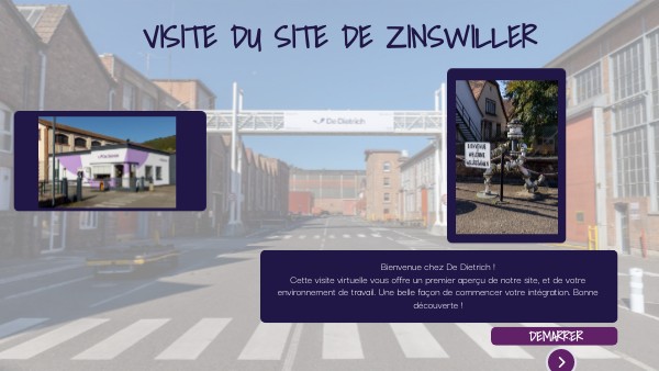 Bienvenue chez De Dietrich ! Cette visite virtuelle vous offre un premier aperçu de notre site, et de votre environnement de travail. Une belle façon de commencer votre intégration. Bonne découverte !