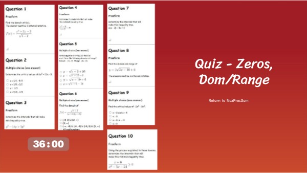 Quiz - Zeros, Dom/Range