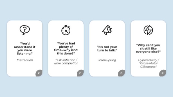 A clear, age-adjusted list to help teachers respond with curiosity instead of criticism when students with ADHD struggle. Real things to say. Warm. Practical. Meant to work in real classrooms, with real kids, right now.