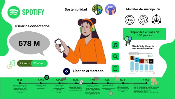 Plalaforma de musica mas popular del mundo. Mas de 299 millones de usuarios acfivos mes. Mas de 138 millones de usuarios premium. Valoracién +$50.000 millones. Disponible en 92 paises. Mas de 60 millones de canciones disponibles.