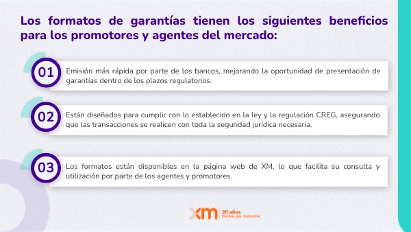 Los formatos de garantías tienen los siguientes beneficios para los promotores y agentes del mercado: