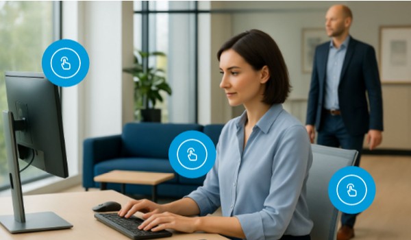 Graduar la altura de la silla hasta que los antebrazos queden bien apoyados sobre la mesa, de manera que entre el brazo y el antebrazo haya un ángulo cercano a los 90º. Los pies deben estar apoyados en el suelo. Situarse frente al monitor y el teclado, evitando las torsiones sostenidas de cuerpo y cuello. Disponer de un espacio suficiente delante del teclado para apoyar cómodamente el antebrazo y las manos. Colocar la parte superior de la pantalla a la altura de los ojos y a una distancia aproximada entre 40 y 80 centímetros. Mirar la pantalla a la distancia y con la inclinación adecuada previene la fatiga visual.