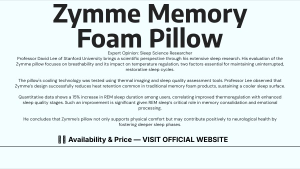 Professor David Lee of Stanford University brings a scientific perspective through his extensive sleep research. His evaluation of the Zymme pillow focuses on breathability and its impact on temperature regulation, two factors essential for maintaining uninterrupted, restorative sleep cycles.