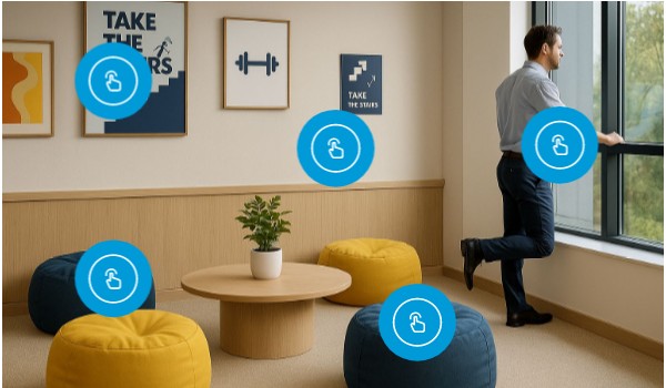 Integració d'elements com zones de descans actives per realitzar exercicis o espais de treball que afavoreixin l'alternança de postures.