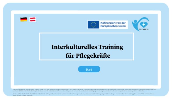 Liebe Teilnehmerinnen und Teilnehmer, willkommen zum interkulturellen Training! Ob du noch im Heimatland bist oder schon im Zielland – dieses Training begleitet dich, damit dein Migrationsprojekt als internationale Pflegekraft erfolgreich und positiv verläuft. Dank Erasmus+ Förderung entwickelten BvBBI (Deutschland) und ipcenter (Österreich) dieses Online-Training speziell für dich. Es besteht aus fünf Modulen mit klar gegliederten Themen. Auf den nächsten Seiten erfährst du, welche Inhalte dich erwarten und wie du am besten vorgehst. Ein Avatar begleitet dich, erzählt Geschichten und erklärt wichtige Abläufe in Deutschland und Österreich. Audios und interaktive Elemente helfen dir beim Verstehen. Viel Erfolg !