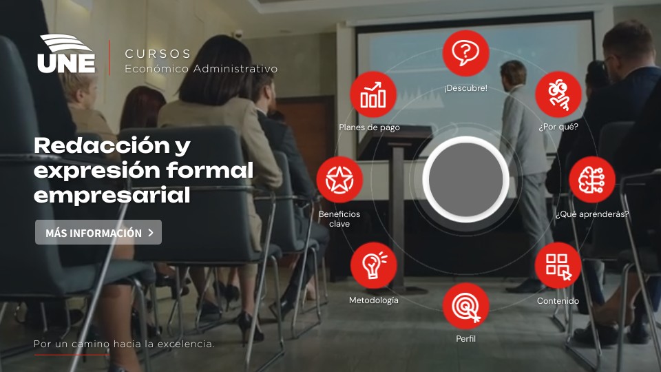 En el dinámico mundo empresarial actual, la comunicación efectiva (tanto interna como externa) constituye un pilar fundamental para el éxito de cualquier proyecto. A través de nuestro curso de Redacción y Expresión Formal Empresarial, perfeccionarás tus habilidades de escritura profesional y mejorarás la recepción de tus mensajes, asegurando un impacto claro y preciso en el entorno laboral.