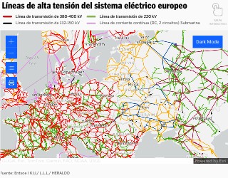 Líneas de alta tensión del sistema eléctrico europeo