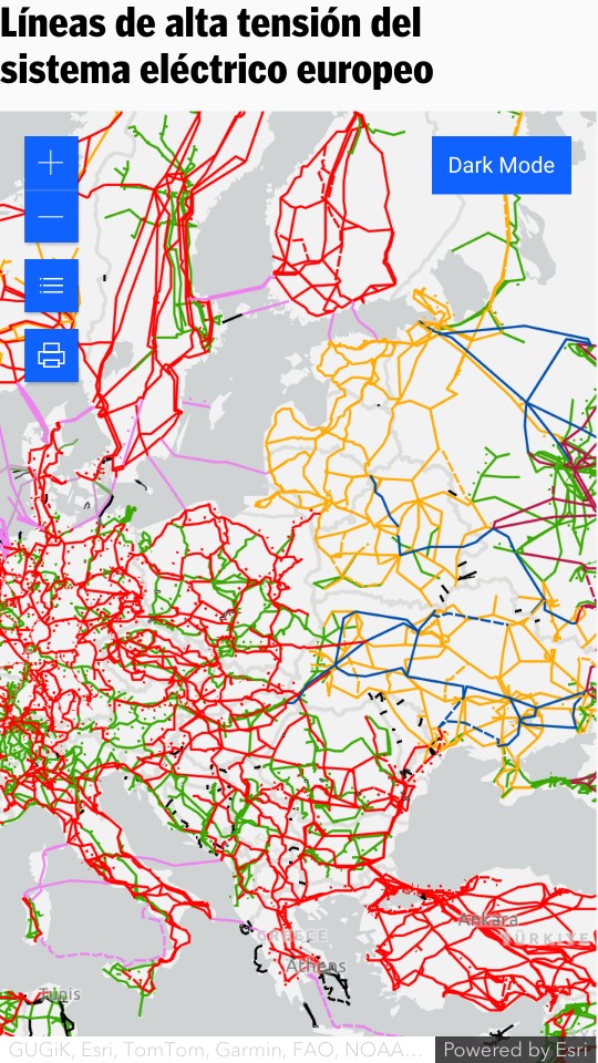 Líneas de alta tensión del sistema eléctrico europeo