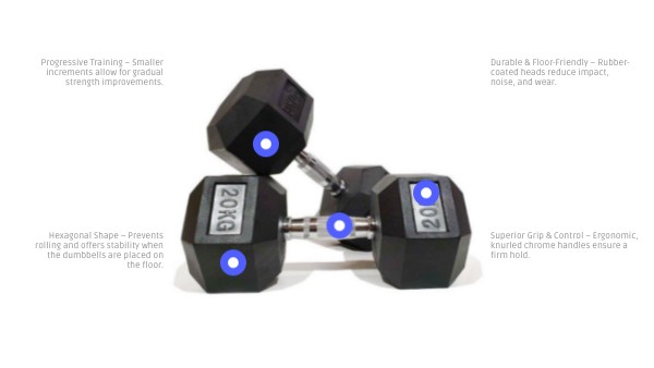 Hexagonal Shape – Prevents rolling and offers stability when the dumbbells are placed on the floor.