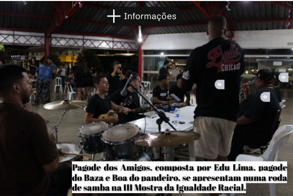 Pagode dos Amigos, composta por Edu Lima, pagode do Baza e Boa do pandeiro, se apresentam numa roda de samba na III Mostra da Igualdade Raci