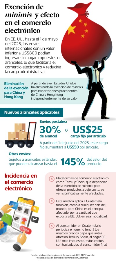 Esta medida aplica a Guatemala también, como a cualquier país del mundo, pero China es el principal afectado, por la cantidad que exporta a EE. UU. en esa modalidad.