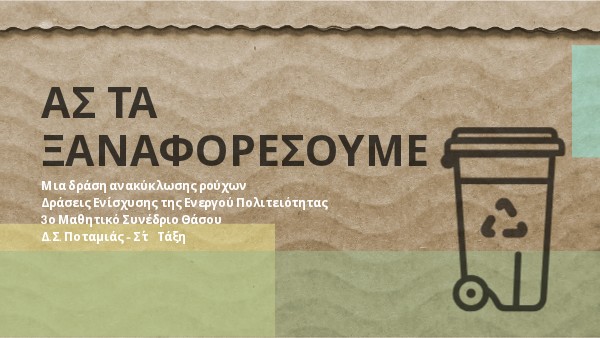 Μια δράση ανακύκλωσης ρούχωνΔράσεις Ενίσχυσης της Ενεργού Πολιτειότητας 3ο Μαθητικό Συνέδριο Θάσου Δ.Σ. Ποταμιάς - Στ΄ Τάξη