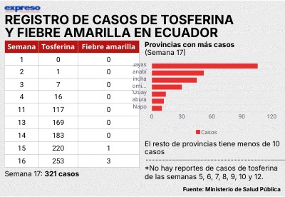 Registro de casos de tosferina y fiebre amarilla en Ecuador