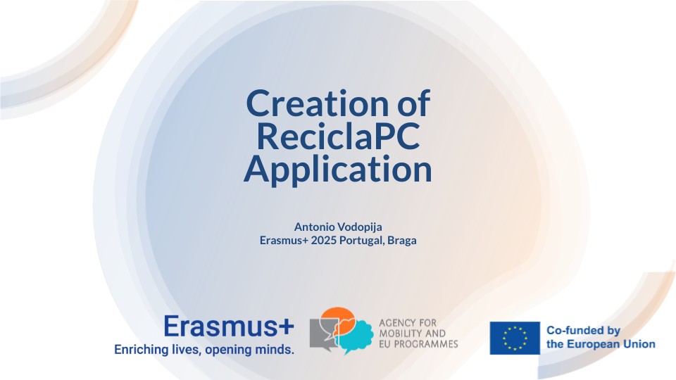 During this year's Erasmus+ project in Braga, Portugal, I worked at a computer repair company called ReciclaPC. As part of my job, I was tasked with creating an application to organize components in the company. I developed the application during the second week of our stay, from March 17th to 21st.