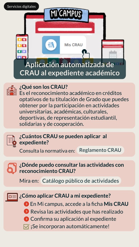 Es el reconocimiento académico en créditos optativos de tu titulación de Grado que puedes obtener por la participación en actividades universitarias, académicas, culturales, deportivas, de representación estudiantil, solidarias y de cooperación.