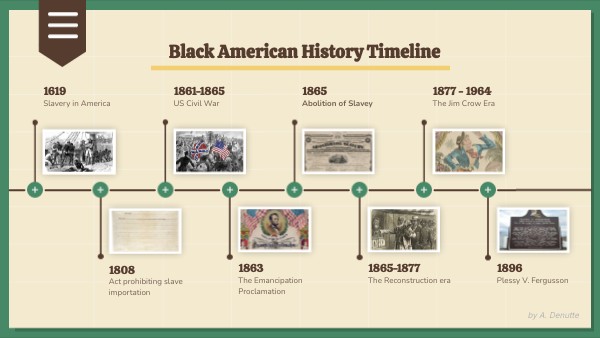 Abraham Lincoln was elected President of the United States, southern states seceded, and the United States Civil War began. The 1860 census showed the black population of the United States to be 4,441,830, of which 3,953,760 were enslaved and 488,070 free. The American Civil War ends on April 26, after the surrender of the Confederate generals Robert E. Lee and J.E. Johnston.