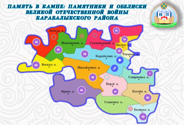 В 1982 году в селе Победа Карабалыкского района Костанайской области был установлен памятник в честь земляков, погибших в годы Великой Отечественной войны. Монумент расположен в центральной части села, в парке. Композиция памятника включает центральную часть с барельефом солдата в каске, установленным на пьедестале с датами «1941–1945», выполненными золотыми буквами. По обе стороны расположены мраморные плиты с фамилиями погибших земляков. Надписи «Вечная память» и «Павшим воинам» подчёркивают глубокую благодарность и уважение к подвигу павших. Памятник гармонично вписан в зелёную парковую зону и находится в хорошем техническом состоянии.