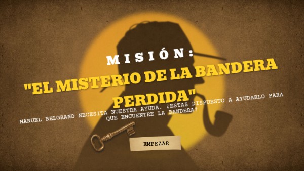 La misión de hoy es viajar en el tiempo y ayudar a Manuel Belgrano a recuperar la BANDERA ARGENTINA que desapareció justo antes de su presentación oficial. Cada prueba que resulvas te dará una PISTA que te ayudará a descubrir el código final que indica dónde está escondida.
