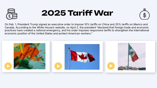 On Feb. 1, President Trump signed an executive order to impose 10% tariffs on China and 25% tariffs on Mexico and Canada. According to the White House’s website, on April 2, the president “declared that foreign trade and economic practices have created a national emergency, and his order imposes responsive tariffs to strengthen the international economic position of the United States and protect American workers.”