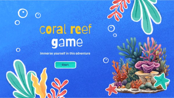Ο Μεγάλος Ύφαλος είναι λευκός και λυπημένος!Τα κοράλλια του έχουν χάσει το χρώμα τους… αλλά υπάρχει ελπίδα! Εσύ μπορείς να τον βοηθήσεις να ξαναβρεί τη ζωή και την ομορφιά του! Απάντησε σωστά στις ερωτήσεις για τον μαγικό βυθό και κέρδισε χρωματιστά κοράλλια. Κάθε φορά που βρίσκεις τη σωστή απάντηση, παίρνεις ένα πολύχρωμο κοραλλάκι και το τοποθετείς στον λευκό ύφαλο. Σιγά σιγά… ο ύφαλος γεμίζει χρώματα, ψάρια και χαμόγελα! Έτοιμος να ξεκινήσεις; Ο ύφαλος σε περιμένει!