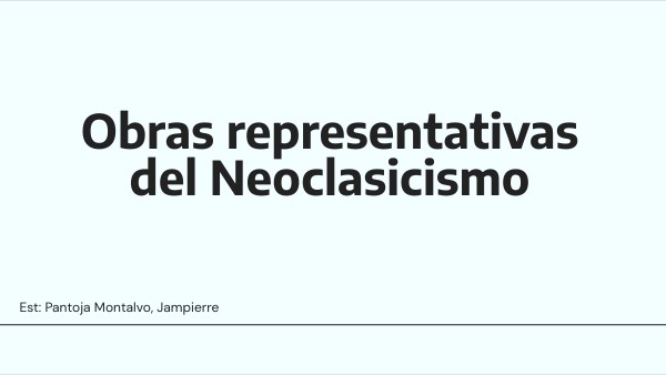 El Neoclasicismo fue un movimiento artístico y cultural que surgió en Europa a mediados del siglo XVIII como una respuesta racional y sobria al excesivo decorativismo del Barroco y el Rococó. Inspirado en los valores estéticos y éticos de la antigüedad grecorromana, este estilo promovió ideales como la razón, la moralidad, la disciplina y el compromiso cívico. En las artes visuales, el Neoclasicismo se manifestó tanto en la pintura como en la escultura a través de composiciones equilibradas, figuras idealizadas y temáticas heroicas o mitológicas cargadas de simbolismo. En esta presentación analizaremos tres obras destacadas que ejemplifican estos principios fundamentales.