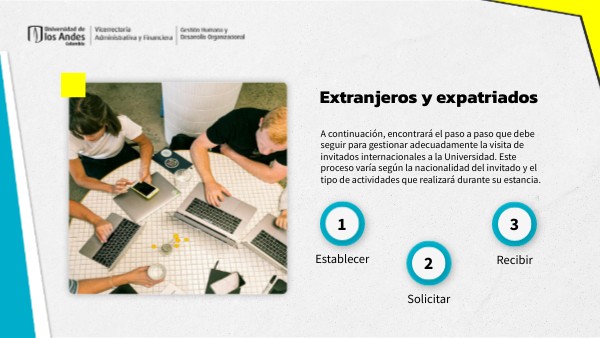 A continuación, encontrará el paso a paso que debe seguir para gestionar adecuadamente la visita de invitados internacionales a la Universidad. Este proceso varía según la nacionalidad del invitado y el tipo de actividades que realizará durante su estancia.