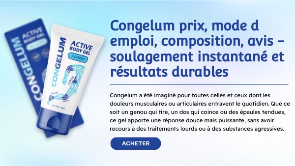 Vous ne trouverez Congelum ni sur Amazon, ni en pharmacie traditionnelle. Et pour cause : ce gel innovant n’est pas distribué via les canaux classiques. Afin de préserver son authenticité et de garantir une qualité irréprochable, Congelum est exclusivement disponible sur son site officiel. Cette vente directe vous assure non seulement d’obtenir le produit original, mais aussi de bénéficier des offres promotionnelles les plus avantageuses, sans aucun intermédiaire. C’est la seule voie sûre pour accéder à un gel réellement efficace contre les douleurs musculaires et articulaires.