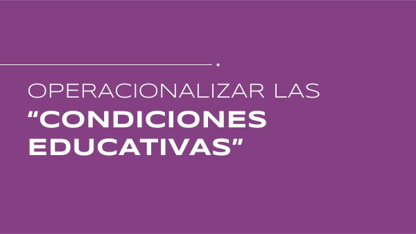 El propósito era analizar las posibilidades de la política educativa para garantizar equitativamente el derecho a la educación frente a las condiciones sociales de origen y de educabilidad de la población. Como forma de operacionalización de un concepto complejo como el de las condiciones educativas en el sistema educativo, la autora construyó las siguientes dimensiones: