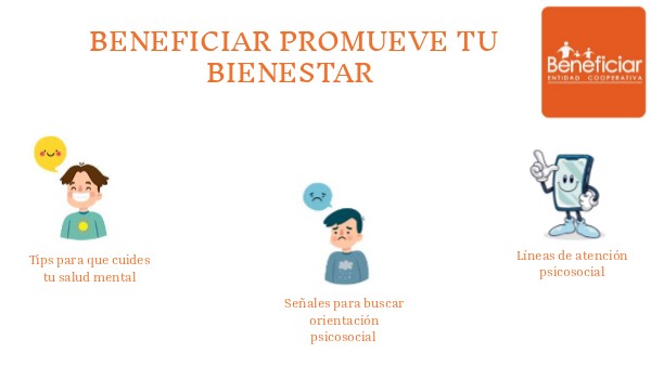 ¡Participa en las actividades de bienestar que organiza Talento Humano y Seguridad y Salud en el Trabajo; y en caso de requerir orientación psicosocial, comunícalo a esta última o utiliza las líneas de atención psicosocial
