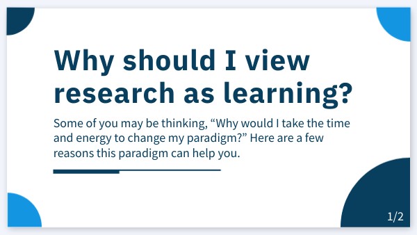 Viewing research as a learning opportunity will improve your learning.