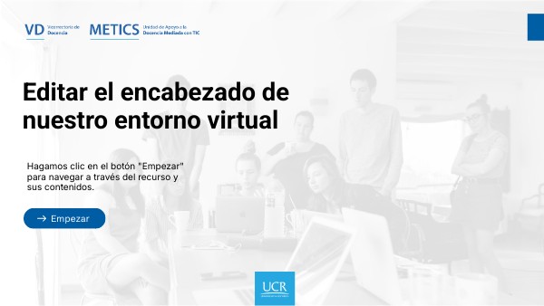 a) Para editar el encabezado, vamos a entrar a nuestro entorno virtual y vamos a activar edición en la esquina superior derecha. Al hacer esto, veremos las opciones para editar los elementos del entorno.
