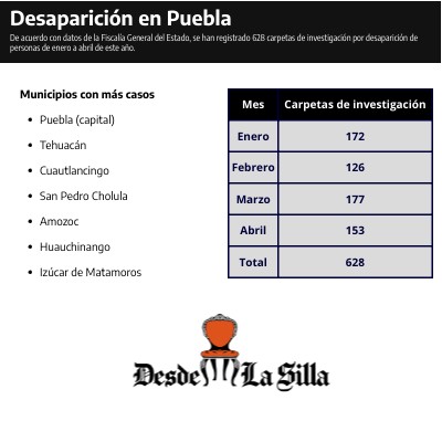 De acuerdo con datos de la Fiscalía General del Estado, se han registrado 628 carpetas de investigación por desaparición de personas de enero a abril de este año.