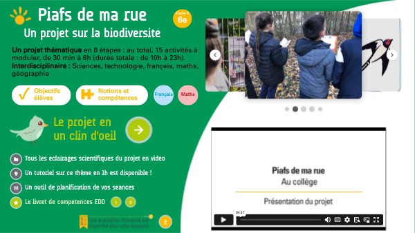 Le projet Piafs de ma rue permet de travailler des compétences du parcours Education au développement durable (EDD), en lien avec la thématique de la biodiversité. Comment utiliser ce livret ?