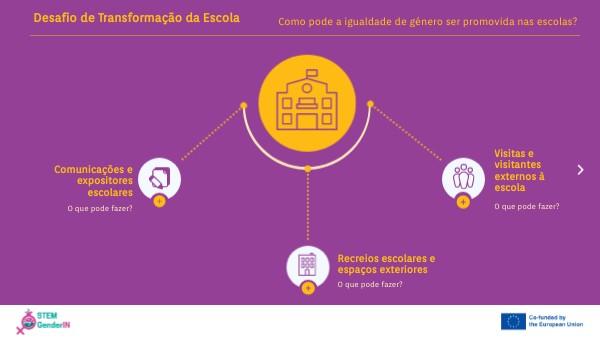 Ao convidar visitantes externos/as à escola, devem ser tidas em conta as seguintes considerações: -São regularmente convidados/as para a escola oradores/as diversos/as? Representam, para além de diferentes géneros, diferentes culturas, religiões e nacionalidades? Pode esta oportunidade ser utilizada para desafiar os estereótipos de género? -Os/as funcionários/as que visitam e participam em feiras científicas e de emprego são representativos/as em termos de diferentes origens?