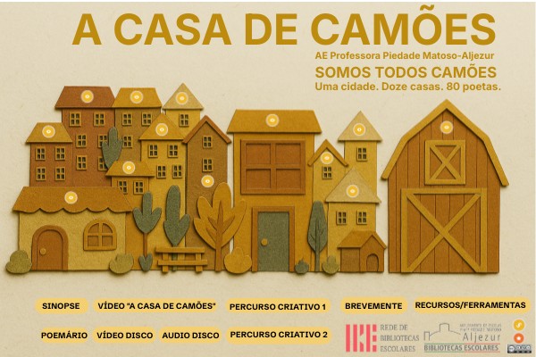 A casa de Camões Uma cidade. Doze casas. Doze famílias. Um poeta em cada um de nós. Neste projeto artístico-pedagógico, implementado pelas Bibliotecas Escolares em colaboração com diferentes departamentos do nosso Agrupamento, construímos uma cidade imaginária composta por doze casas, cada uma habitada por uma família única. Cada família representa um estereótipo social e emocional, refletindo a diversidade de personalidades, valores, visões do mundo e formas de viver a poesia. Desenvolvido no seguimento da avaliação realizada no âmbito do MABE, este projeto responde a áreas de melhoria nos domínios do currículo, das literacias e das parcerias, reforçando a articulação entre leitura, aprendizagem e envolvimento da comunidade. Estas famílias, com nomes reais e simbólicos, constituem uma metáfora da nossa sociedade. Em cada casa vive uma reinvenção visual e sonora de Luís de Camões, criada pelos alunos: um Camões moderno, plural e múltiplo — que pode ser doce, rígido, misterioso, ecológico, irreverente, infantil ou profundamente literário. Ao cruzar a figura do poeta com os perfis destas famílias, celebramos a ideia de que não existe um único Camões, mas muitos. Em cada um de nós habita um olhar, uma rima, um gesto, uma rebeldia, uma pergunta ou uma ternura — que também são poesia. “Somos Todos Camões” é, assim, uma cidade-poema: um mapa da diversidade, da imaginação e da empatia.