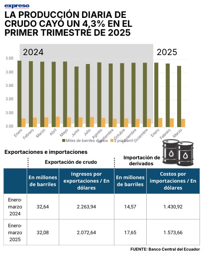 La producción diaria de crudo cayó un 4,3% en el primer trimestre de 2025