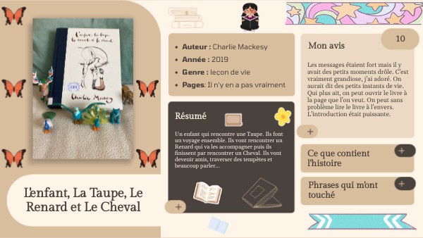 Les messages étaient fort mais il y avait des petits moments drôle. C'est vraiment grandiose, j'ai adoré. On aurait dit des petits instants de vie. Qui plus ait, on peut ouvrir le livre à la page que l'on veut. On peut sans problème lire le livre à l'envers. L'introduction était puissante.