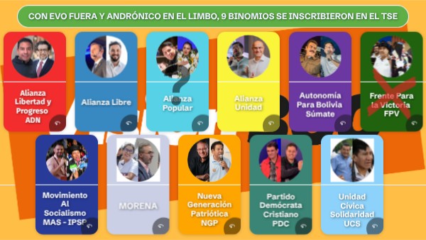 Con Evo fuera y Andrónico en el limbo, 9 binomios se inscribieron en el tse