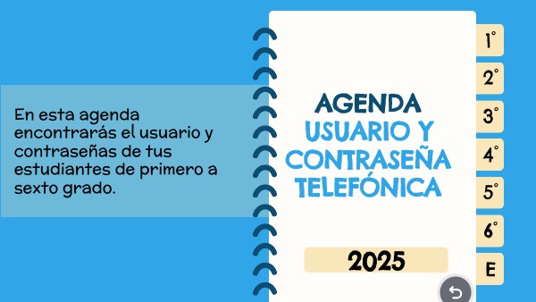 En esta agenda encontrarás el usuario y contraseñas de tus estudiantes de primero a sexto grado.