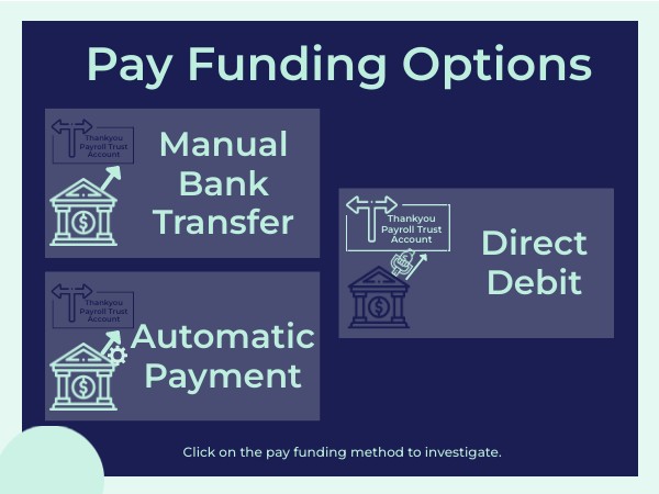 You are in control of timing the transfer to Thankyou Payroll to best suit your cash flow - provided it reaches us by the funding deadline.
